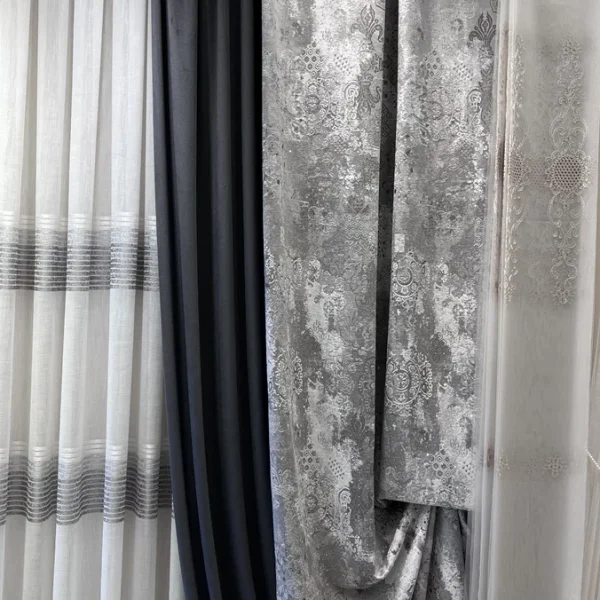 در طراحی دکوراسیون داخلی، انتخاب پرده تنها برای کنترل نور یا حفظ حریم نیست؛ بلکه یکی از عناصر اصلی در شکلدهی به سبک کلی فضا به شمار میآید. پردهای که پیش روی شماست، ترکیبی هنرمندانه از پارچه تور دانتل گلبرجسته بهعنوان پرده اصلی و کنار پرده شانل سنگکاریشده با طراحی سلطنتی است. این مدل پرده برای منازلی طراحی شده که در آنها زیبایی کلاسیک، دکوراسیون چوبی، مبلمان سلطنتی یا فضای لوکس، اولویت دارد.