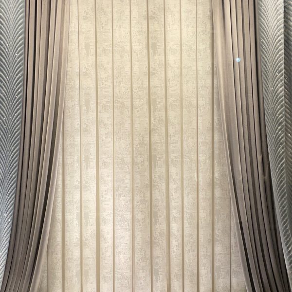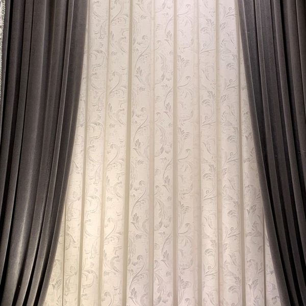 - ویژگی نصب: پرده اصلی و دکور، هر دو روی یک ریل سقفی مینیمال نصب میشوند؛ ساده، بدون شلوغی و با جلوهی نهایی تمیز و منظم