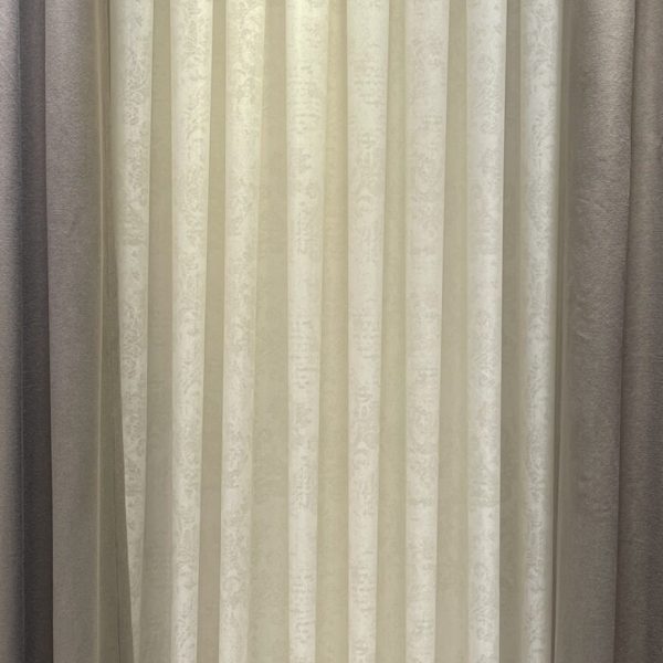 کنارپرده: تور تمام طرح با خامهدوزی برجسته طرح برگ