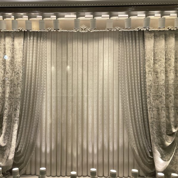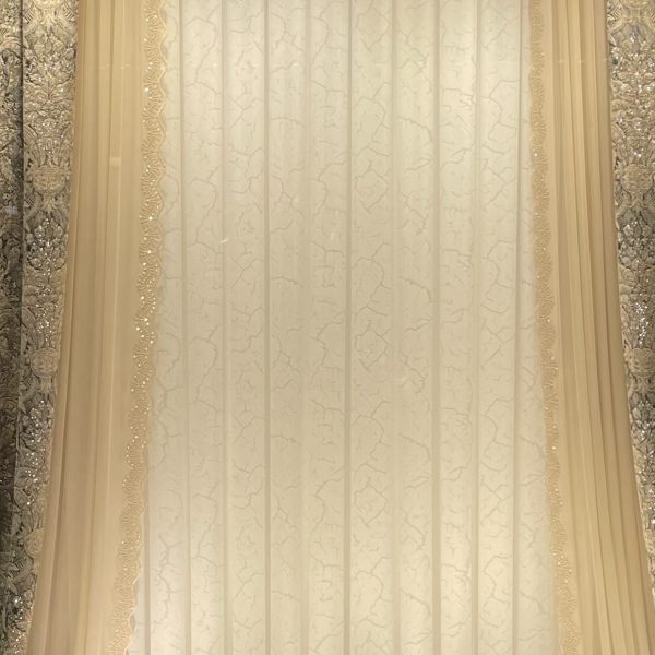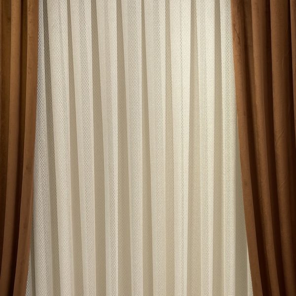 لایه زیرین پرده رومن با دکوری پانچ و حریر ساده از جنس حریر ساده است. حریر به دلیل شفافیت و ظرافت خود، نور را به خوبی از خود عبور میدهد و فضایی روشن و دلباز ایجاد میکند.