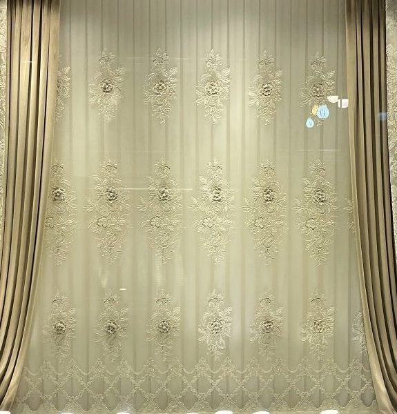 - کنار پرده تور لب حاشیه با طرح داماس برگی